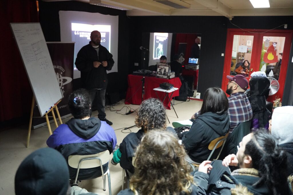 Espacio equipado con amplificación, batería, micrófonos, mesa de sonido e interfaz para ensayos y sesiones en vivo. Incluye asistencia técnica. Valor: $10.000/hora (sin IVA).